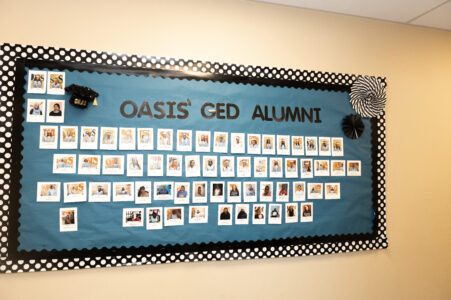 This fall, we visited Oasis – A Haven for Women and Children, located in Paterson. Oasis received a $100,000 grant from Impact in 2023 for “WomenSpeak: The Oasis English as a Second Language” program. The program provides ESL classes for up to 200 immigrant women of varying English Language skill levels. Oasis helps these women integrate into the community, prepare for the U.S. citizenship test, and more. To ensure they can attend the program and become job-ready, Oasis also offers childcare, meals, clothing, and counseling. (Learn more about Oasis in this Grantee Spotlight.)
