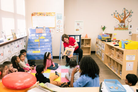 Our SSYC visit included a tour of the facility and an opportunity for each Impact100 visitor to read a story in a preschool classroom, and then the group discussed challenges and future plans with Impact100 member and SSYC Executive Director Leah Dade. One member in the visiting group later commented, “The visit made [the grant] more personal to me than reading about it or watching a video could do. It was incredible to see where our grant money went, how it was being utilized, and how many people it is helping—not only the children but also all the employees. The future needs and expansion plans of the program were thought-provoking.”